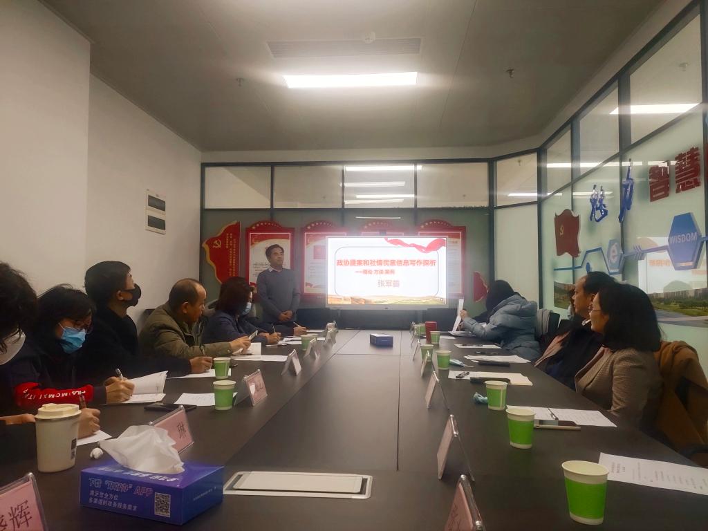 随后,在参政议政研讨环节,张军善处长作了“政协提案和社情民意写作探析”辅导报告,他从“什么是政协提案还是社情民意信息,怎样撰写政协提案和社情民意信息,怎样提高撰写政协提案和社情民意信息能力”等三个方面深入浅出的阐述了政协提案和社情民意信息的写作事宜。与会会员表示收获很大,深受启发深受鼓舞。王彩虹副巡视员最后讲话,对民进中工支部2020年工作进行了充分肯定,结合民进省委会的工作安排,对民进中工支部2021年的工作提出期望:一要“创先争优”;二要认真撰写政协提案和社情民意信息;三要拓展“2对1”精准帮扶内涵外延,及时报送材料。