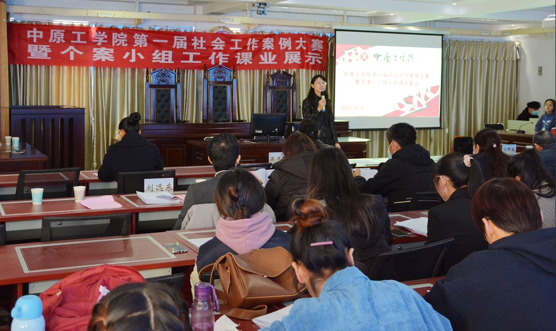 12月3日上午,由威廉希尔体育登录入口创新创业学院主办、威廉希尔足球官方网站/知识产权学院承办的“威廉希尔体育登录入口第一届社会工作案例大赛”,在龙湖校区八号楼模拟法庭举行。威廉希尔足球官方网站、知识产权公司党总支书记曲光华、副书记陈义珊,副经理付琛瑜、柴国生、张金艳,院学工办主任李学强、院综合实验中心副主任李志豪及社会工作系全体教师和部分员工代表百余人参会。本次比赛邀请7位社会工作专业教师担任评委。